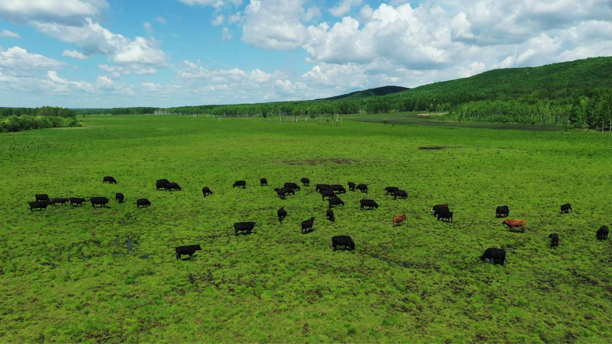 孙吴县地处北纬49°全球“最佳养牛带”,昼夜温差大,每年有近150天的严寒天气,这样独特的地理环境和气候优势,使得牛肉雪花纹清晰、大理石花纹均匀,营养丰富、奶香四溢、口感鲜美,确保了肉的健康和优质。同时,草场、秸秆资源丰富,有宜牧草原81.9万亩,年产作物秸秆56万余吨,为安格斯肉牛产业发展提供了适宜的成长环境和丰富物料资源。孙吴县坚持走差异化、特色化发展之路,深挖优质资源禀赋,积极推进“畜头肉尾”,科学定位统筹全局,锚定“纯种安格斯牛引进+本土化育种+扩繁育肥+精深加工+品牌销售”的现代化产业发展思路,扎实推进高端肉牛“百千工程”,2016年在全省率先从澳洲引进Ⅰ类系谱纯种安格斯肉牛3800余头,并完善政策支持体系,采取“政府引导、合作社运作、金融支撑、保单担保”四位一体模式,连续出台6项产业扶持政策,在基础母牛引进、建舍、保母扩群、冻精、购机、屠宰加工等多方面予以扶持,兑现补贴资金1500余万元,贷款贴息230多万元,为安格斯肉牛产业奠定了“政企联动、政策惠农”的良好发展基础。为统筹推进安格斯肉牛产业项目建设和招商引资,还组建安格斯肉牛产业链专班,构建“一个班子、一套机制、齐抓共管、专题推进”的工作体系,坚持一二三产业齐头并进,全力下好全产业链发展“一盘棋”。