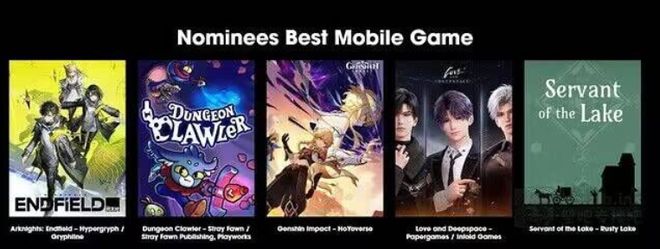 众所周知,这两天游戏界科隆游戏展吸引了所有玩家的目光,除了黑钟馗丝之歌这些让我螺旋起飞的新作之外,手游项目组提名也非常引人眼球,本次最佳手游项目提名包括《明日方舟终末地》、《抓抓地牢》、《原神》、《恋与深空》、《锈湖》。最终竞逐出今年的最佳手游为《恋与深空》恭喜叠纸~