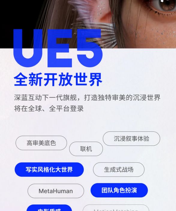 还是深蓝,深蓝互动招聘在公众号披露新项目,标签有写实风格化大世界,团队角色扮演,电影质感,然后开始招人,目前看来想走画风不同的大世界道路,不过项目基本每个方面都在招人,估计还在新建文件夹,这也是最近又一个2D转3D的游戏公司,黄鸡和鹰角之后二游圈又来一位做大世界的。