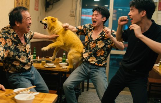看它们怎么跟在老张身后,寸步不离;看它们怎么跟来吃饭的熟客摇尾巴,温顺得像只猫;看它们怎么在老张打盹的时候,警惕地竖起耳朵,守护着这个小小的饭馆。