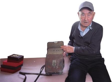 “还有这个,真是老物件了。”孔宪仁说着,拿出来一个老式竖翻盖皮包。包的外侧已经磨损,盖扣处的金属生了锈,颜色也几乎看不出来了。“这是我成为文化干事后,部队发的。后来我当通讯员,也背着它上过前线。”孔昭绪说。