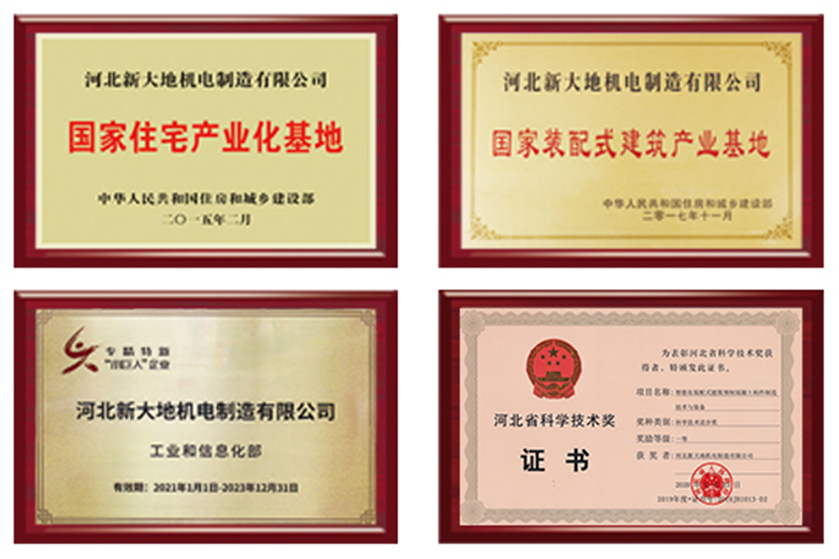 国家高新技术企业、国家住宅产业化基地、国家装配式建筑产业基地、国家级专精特新“小巨人”企业。在建筑部品部件制造装备领域技术国内领先,多次获得河北省科学技术进步奖、河北省科学技术成果奖等。